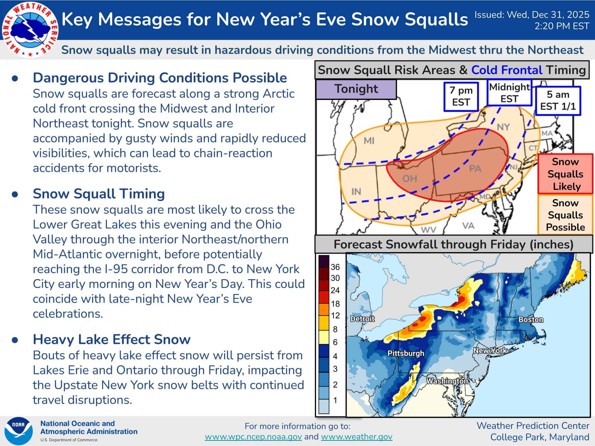 Snow Squalls Could Create Hazardous New Year’s Eve Travel Across Delmarva, Maryland, and Pennsylvania